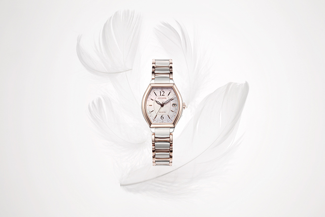 ケース・バンドに纏うのは女性の肌を明るく美しく魅せることのできるシチズンだけの特別なカラー、サクラピンク®。