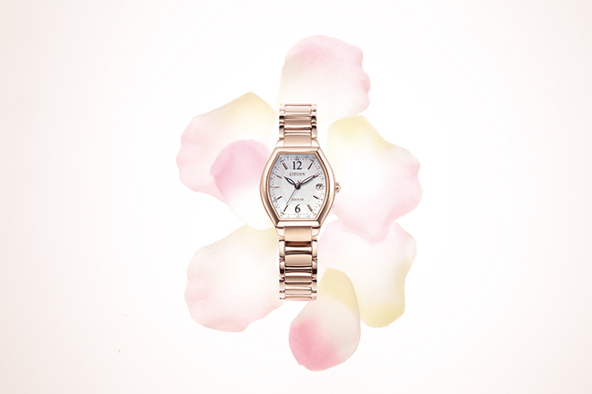 • ケース・バンドに纏うのは女性の肌を明るく美しく魅せることのできるシチズンだけの特別なカラー、サクラピンク®。