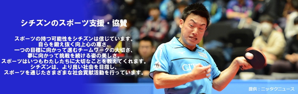 シチズンの卓球チームの歴史は古く、「日本卓球協会」、「日本卓球リーグ実業団連盟」他が主催する各種競技会で活躍していますが、一方ではそれらの競技会に協賛するなど、卓球の振興に寄与しています。