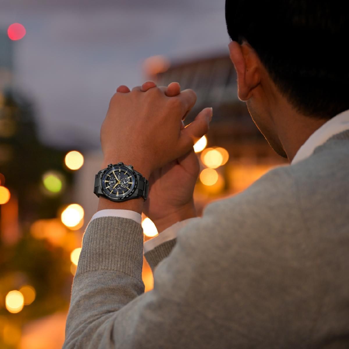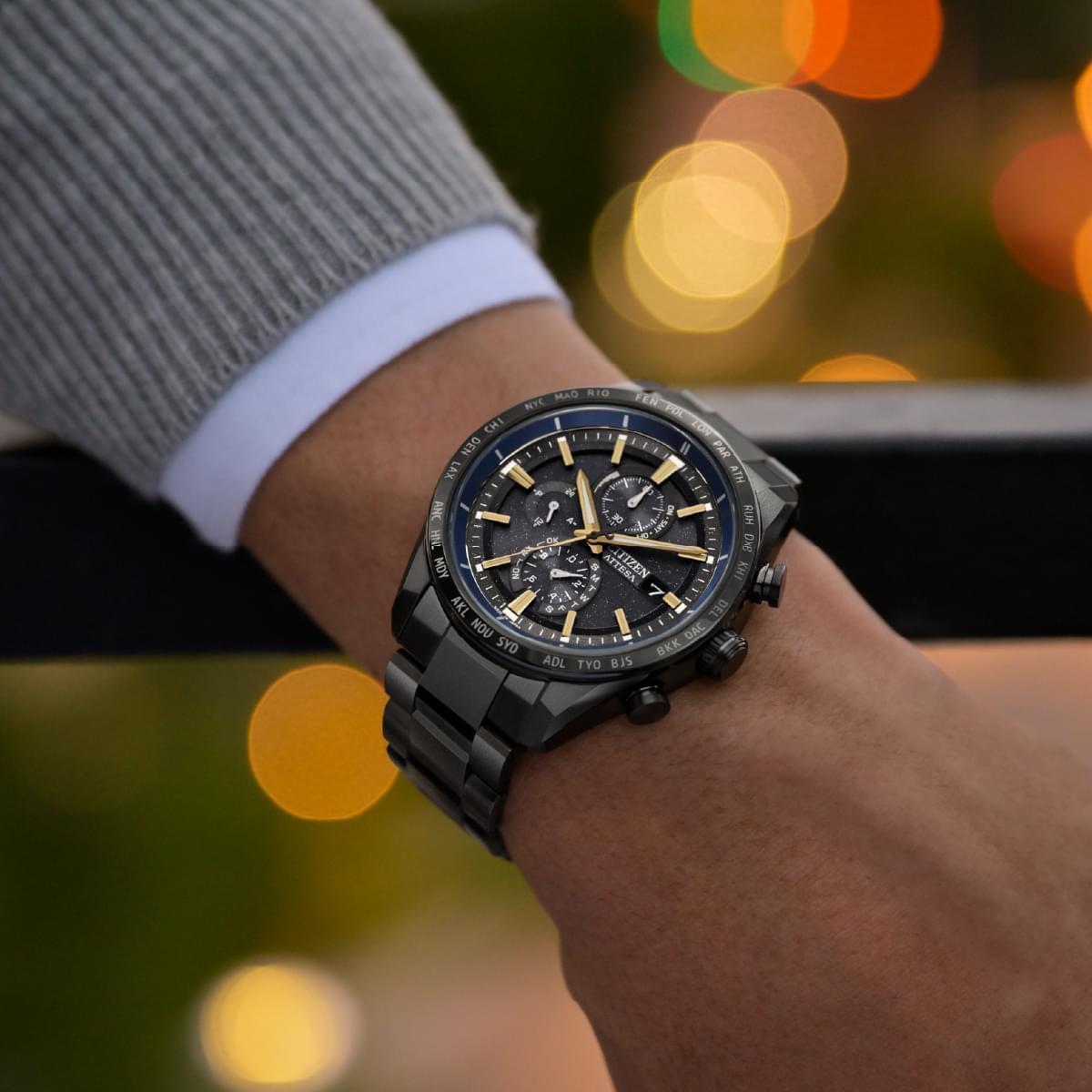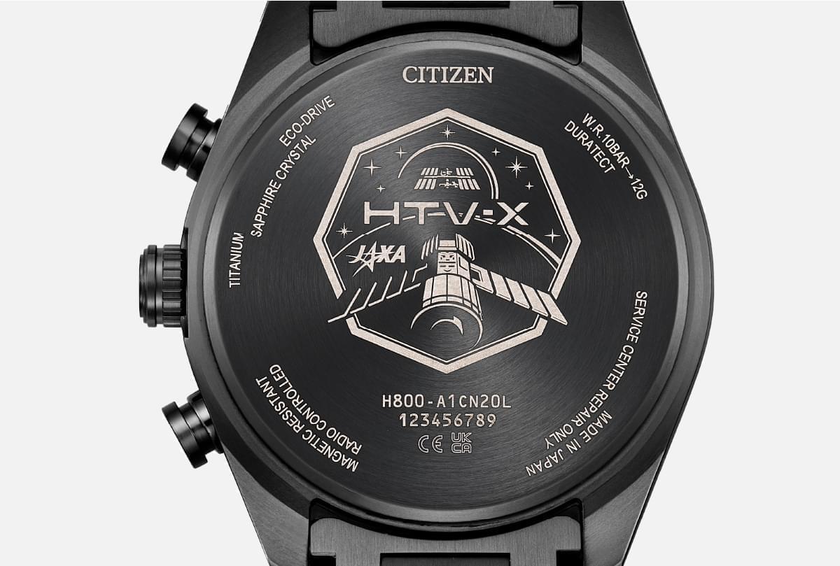 文字板文字板全体に宇宙空間を感じさせるラメが輝き、HTV-Xのゴールドをモチーフにした針とインデックスが自然と目を引くデザイン。またHTV-Xのソーラーセルをイメージしたインジケーターリングがさりげなく魅力を放ちます。