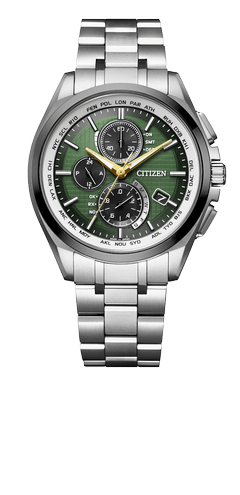 トラディショナルグリーンにイエローゴールドの時分針を合わせて。ペア感を残しながらも、バンドとリングを変えればぐっと印象が変わります。