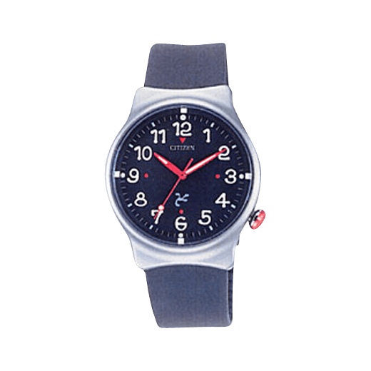 りゅうずを大きくして回しやすくし、針との関連性を認識しやすいよう赤の配色で共通化しました。さらに、大きくなったりゅうずが肌に当たらないように、4時位置に置き、バンドは脱着が楽な「両プッシュ中留」方式。プッシュボタンは爪を傷めないよう、大きくソフトなボタンを採用しています。