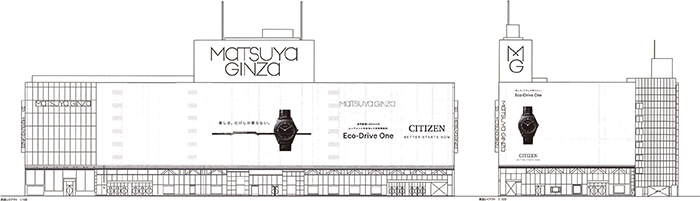 シチズンの巨大広告が銀座の街に出現 「エコ・ドライブ ワン」最新モデルの薄さと美しさを訴求 2018年9月15日~10月14日