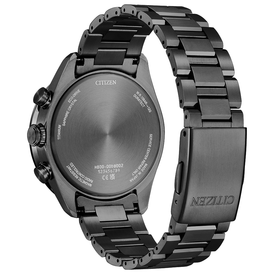 チタニウムにデュラテクト(表面硬化技術)を施したシチズン独自の素材『スーパーチタニウム』。ステンレスに比べて40%軽く、5倍以上の表面硬度を実現しています。