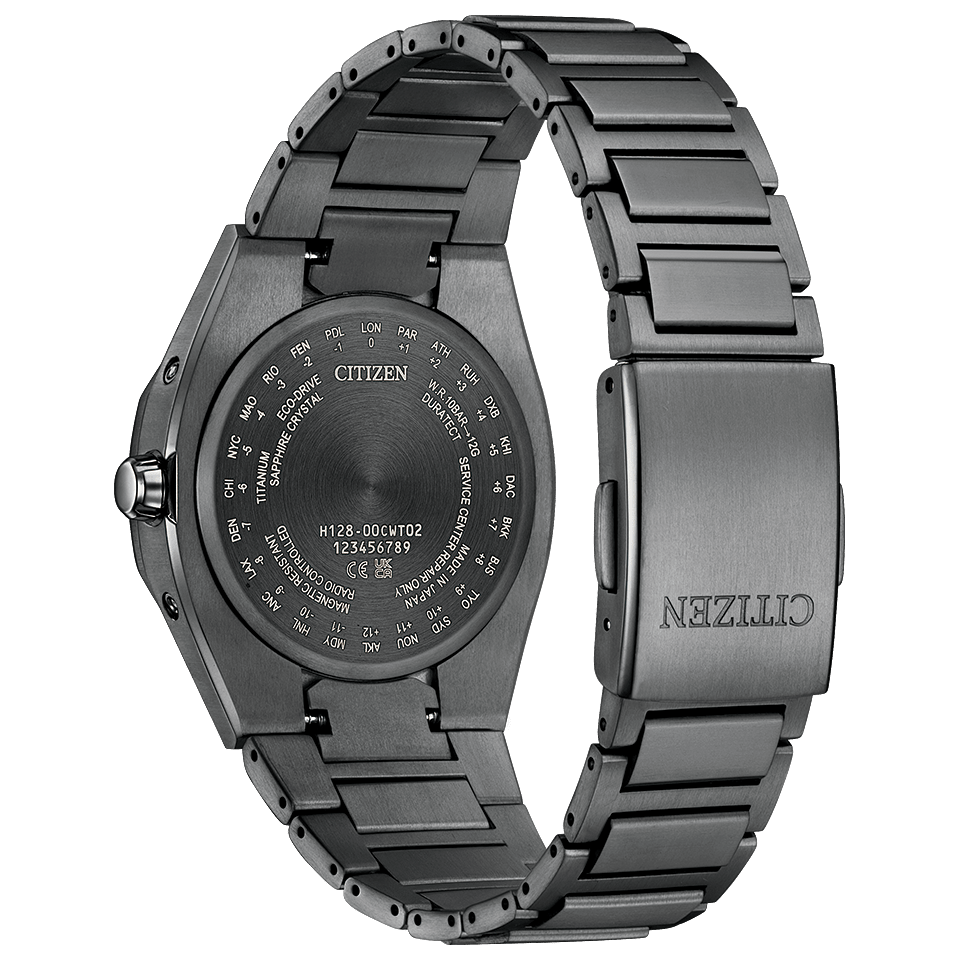 チタニウムにデュラテクト(表面硬化技術)を施したシチズン独自の素材『スーパーチタニウム』。ステンレスに比べて40%軽く、5倍以上の表面硬度を実現しています。
