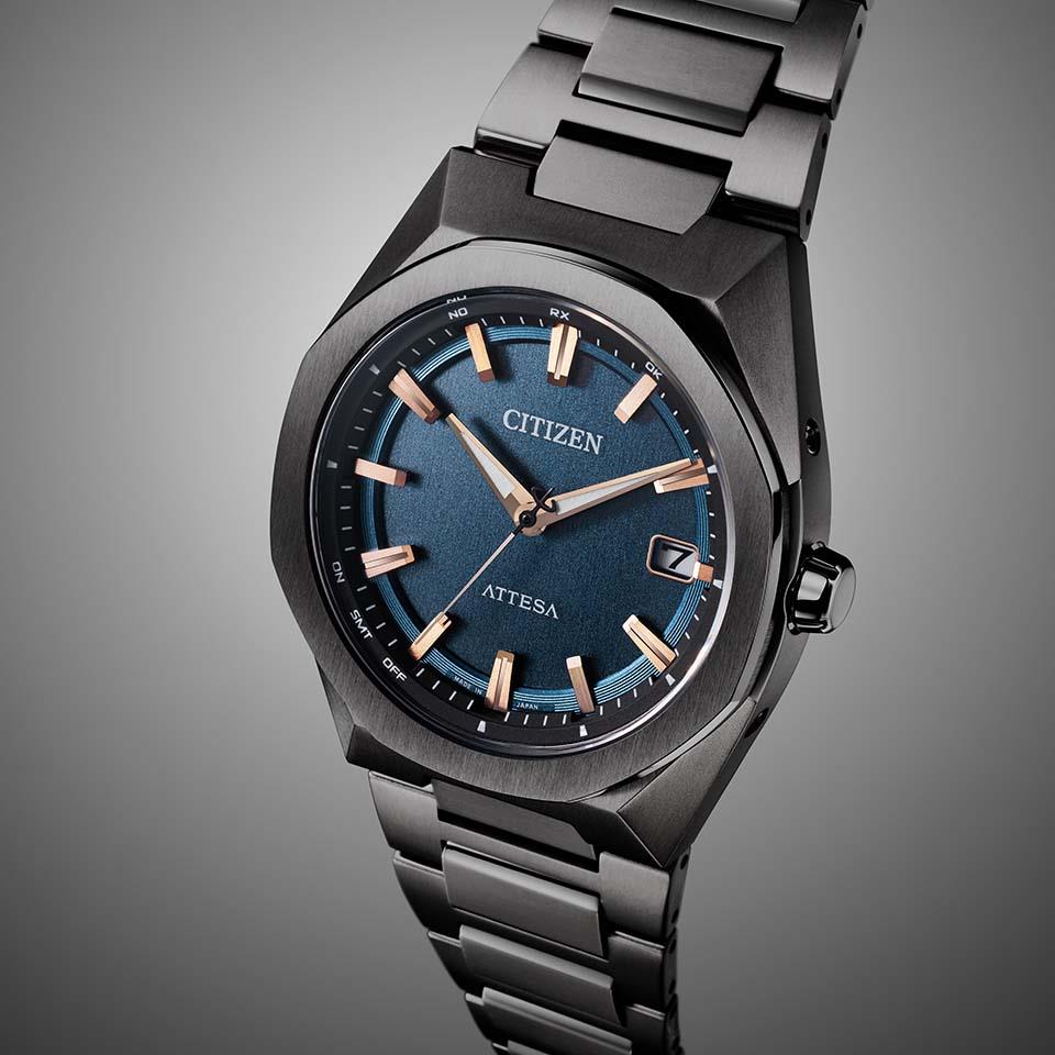 メタリックなカラーと質感にこだわった八角形のコンパクトなケースでスポーティなデザインが人気の3針モデル。文字板は、ヘアラインの成型パターンを施し、メタリック塗装を組み合わせることで、金属の一枚板を思わせる仕上がりを実現しました。