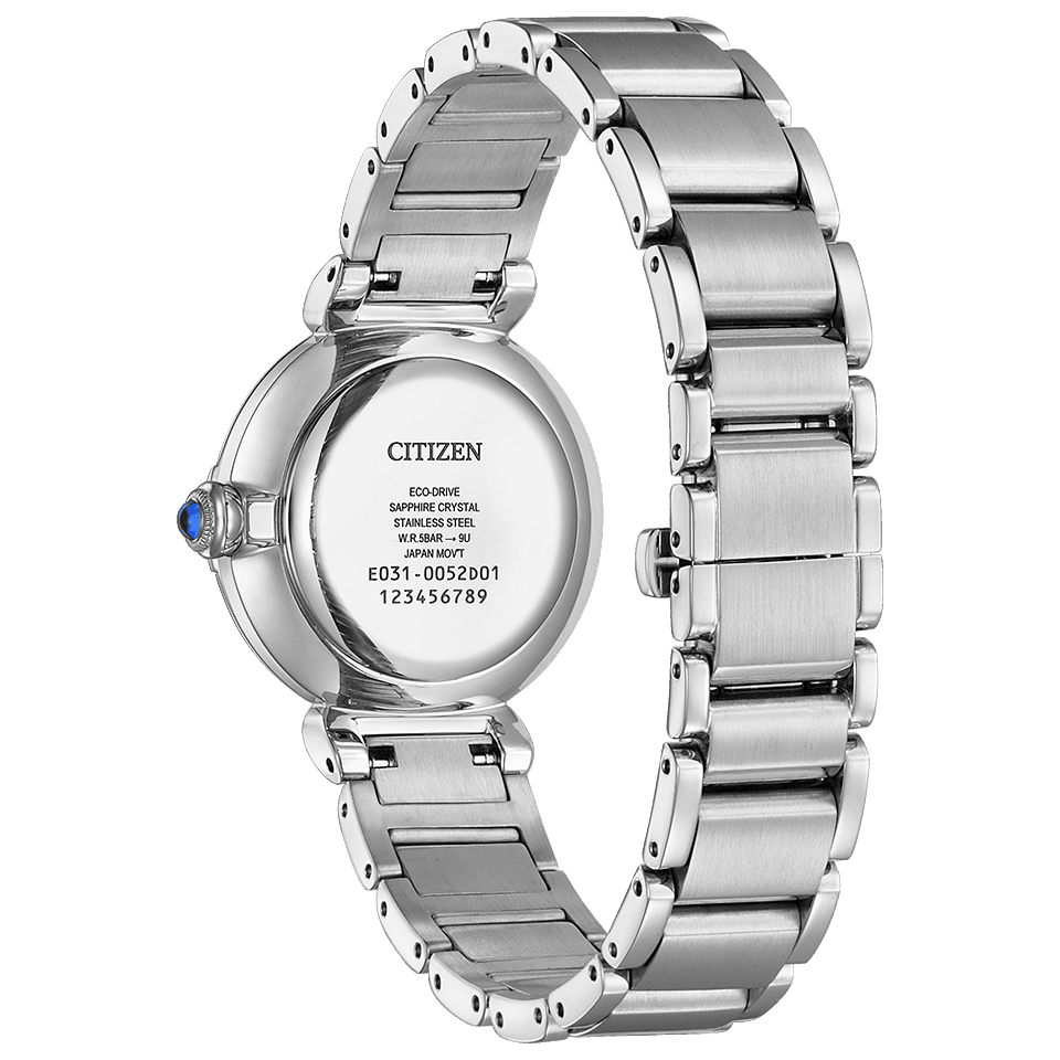 光発電『エコ・ドライブ』は、太陽光や室内のわずかな光を電気に換え、時計を動かしつづけるシチズン独自の技術です。一度フル充電すれば、光のないところでも長時間動き続けるので、定期的な電池交換は必要ありません。