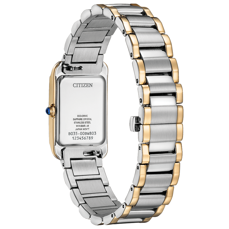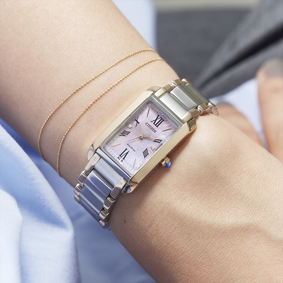 光発電『エコ・ドライブ』は、太陽光や室内のわずかな光を電気に換え、時計を動かしつづけるシチズン独自の技術です。一度フル充電すれば、光のないところでも長時間動き続けるので、定期的な電池交換は必要ありません。