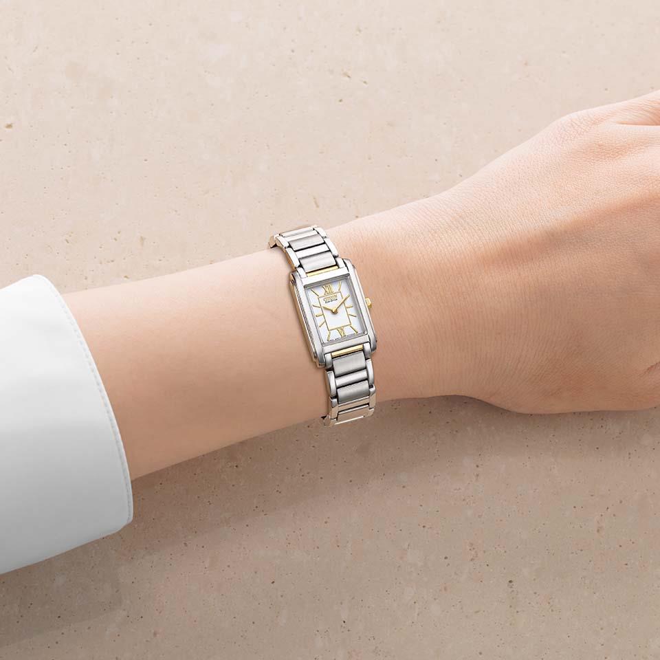 光発電『エコ・ドライブ』は、太陽光や室内のわずかな光を電気に換え、時計を動かしつづけるシチズン独自の技術です。一度フル充電すれば、光のないところでも長時間動き続けるので、定期的な電池交換は必要ありません。