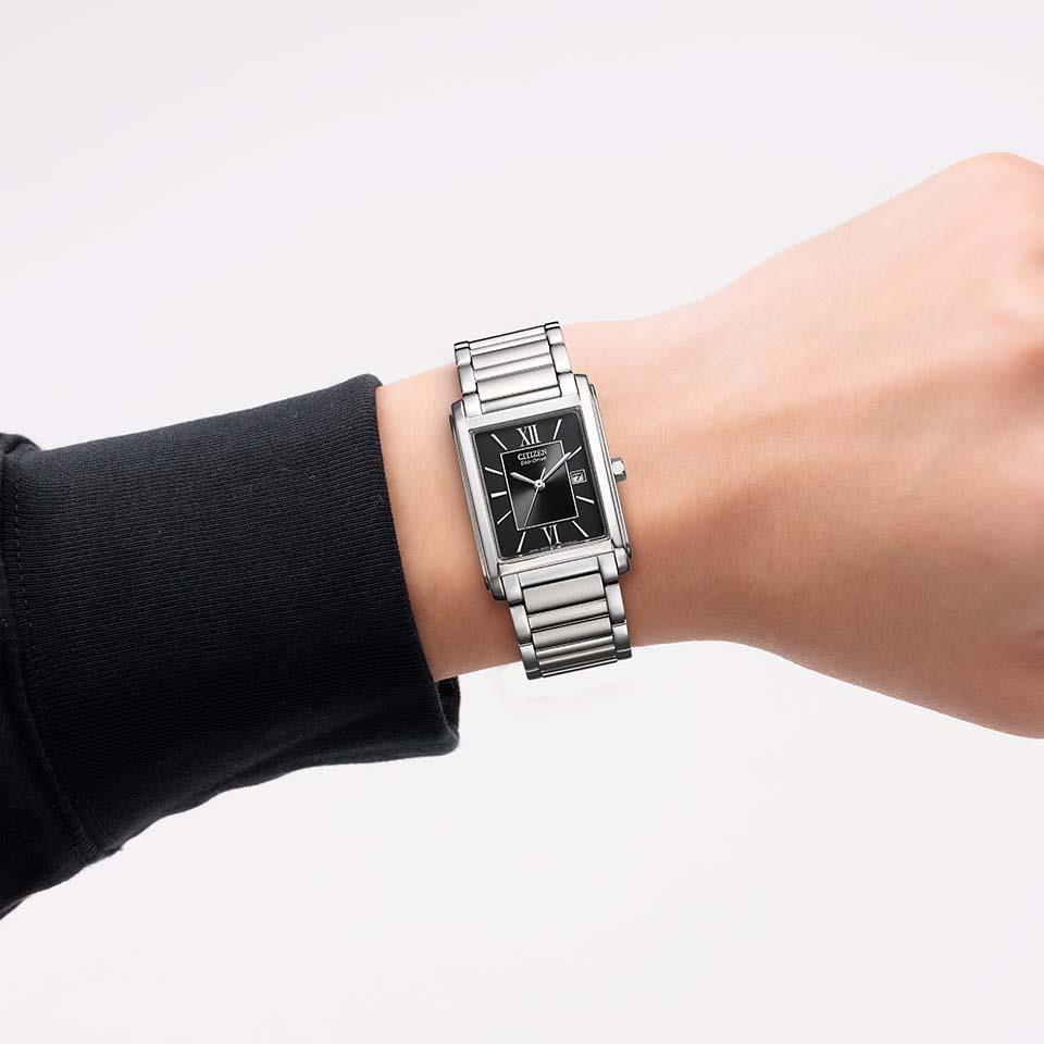 光発電『エコ・ドライブ』は、太陽光や室内のわずかな光を電気に換え、時計を動かしつづけるシチズン独自の技術です。一度フル充電すれば、光のないところでも長時間動き続けるので、定期的な電池交換は必要ありません。