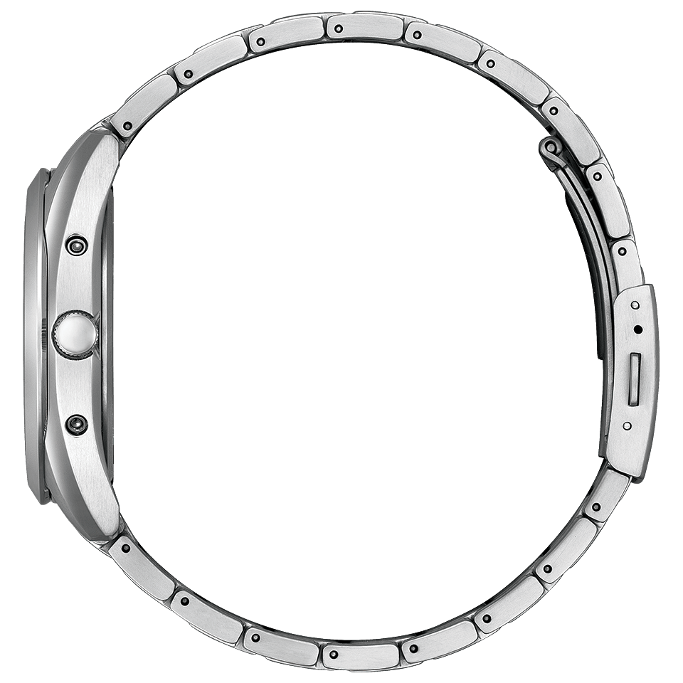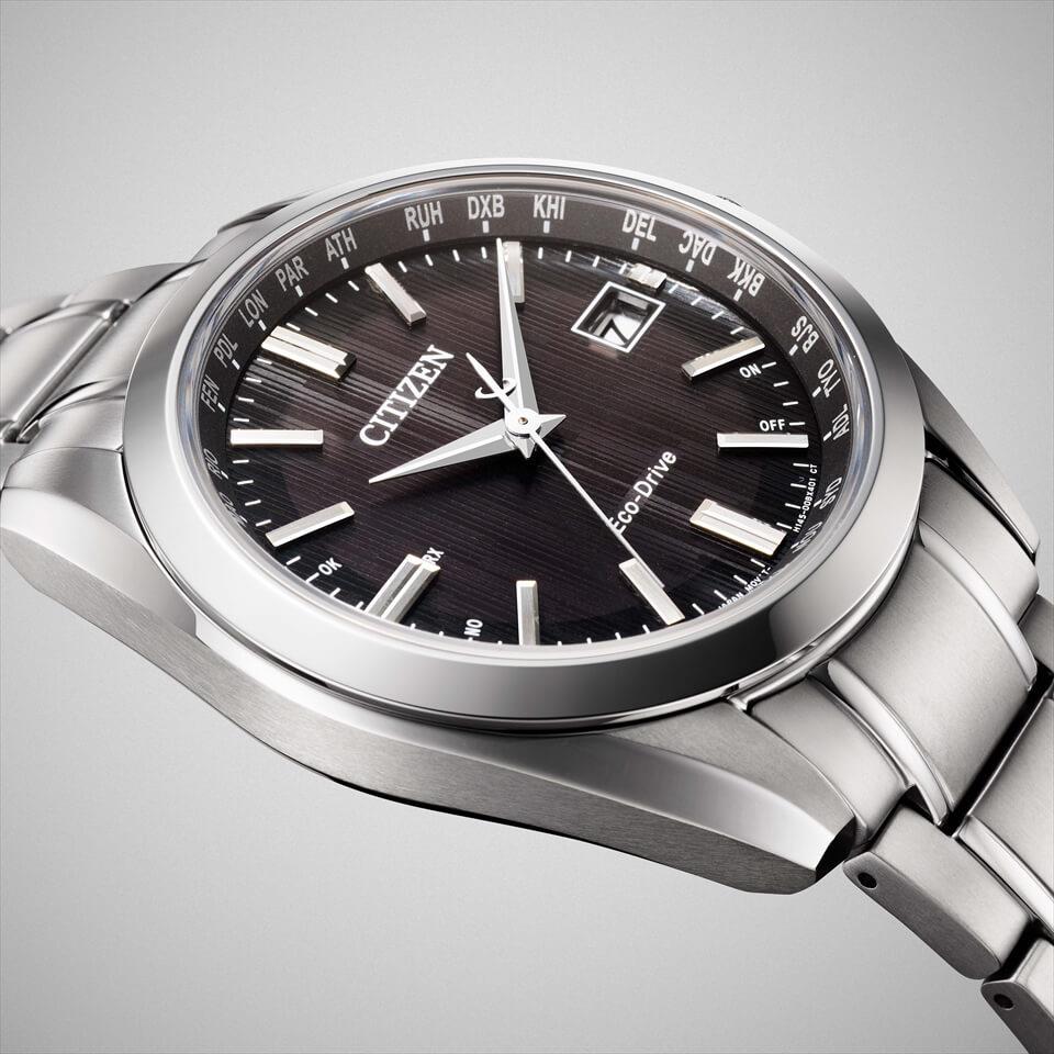 ケースとバンドにスーパーチタニウム™を採用した、ベーシックな3針タイプのエコ・ドライブ電波時計。ベゼルとバンドにはミラー面も取り入れ、上質感を演出しました。落ち着いたカラーで、縦方向にパターンをあしらった文字板はシンプルで見やすく、幅広いシーンでお使いいただけるデザインです。