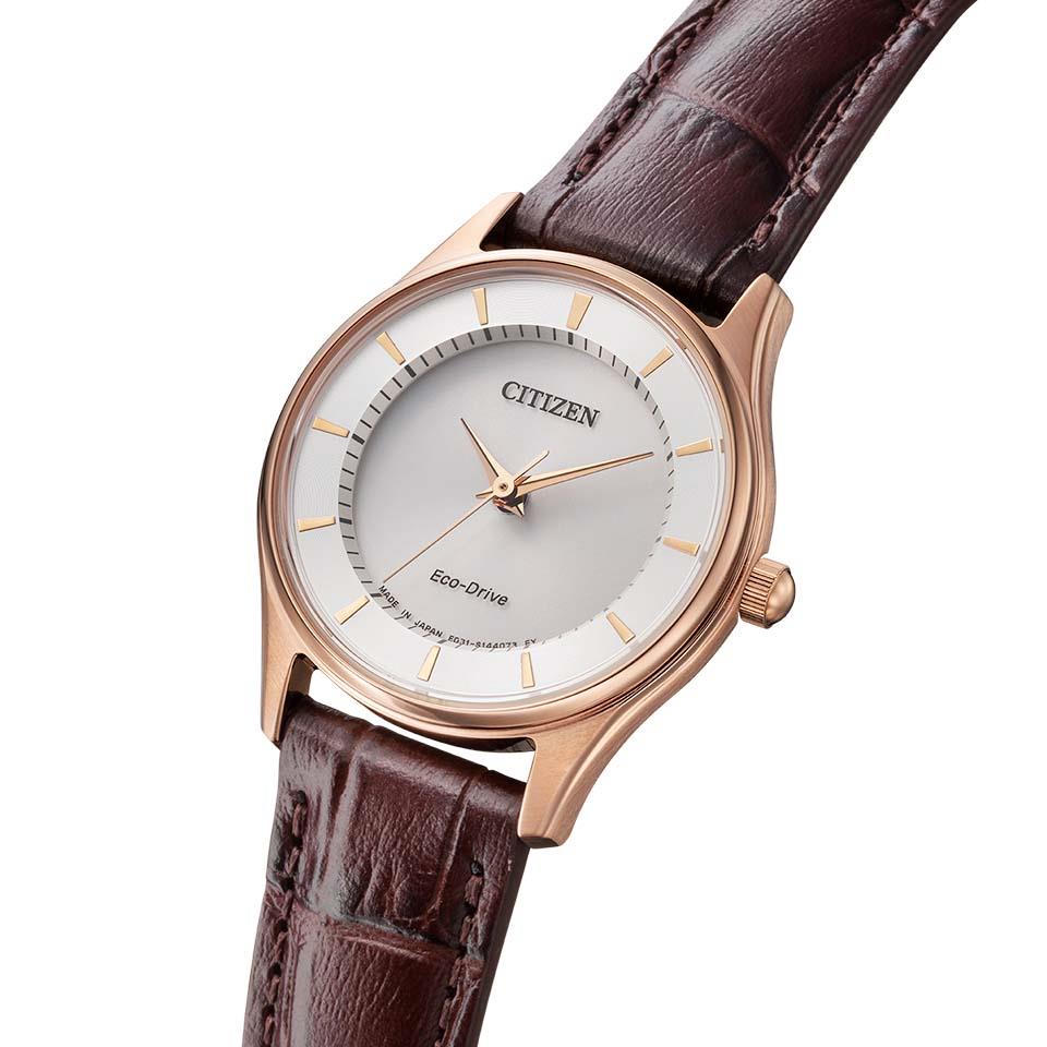 光発電『エコ・ドライブ』は、太陽光や室内のわずかな光を電気に換え、時計を動かしつづけるシチズン独自の技術です。一度フル充電すれば、光のないところでも長時間動き続けるので、定期的な電池交換は必要ありません。