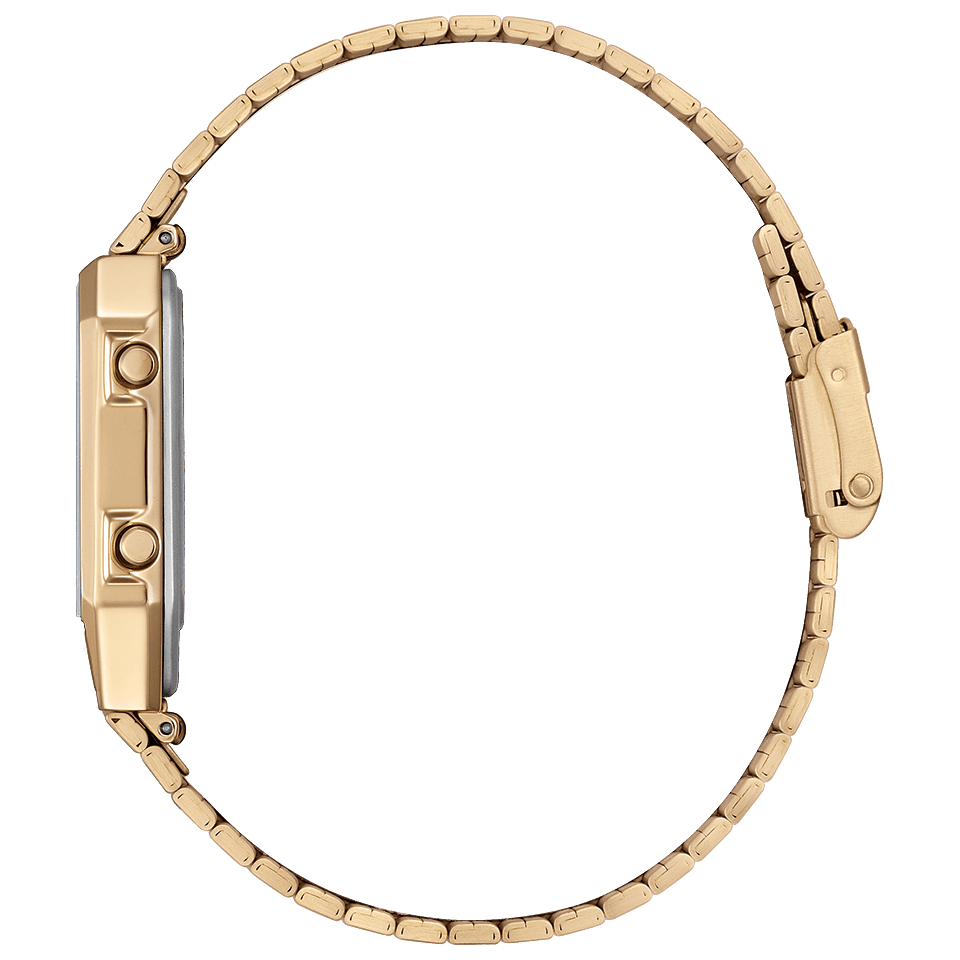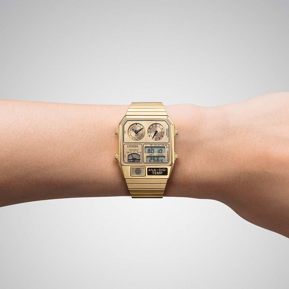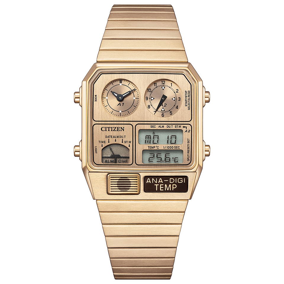1980年代に登場した、レトロフューチャーなデザインが現在でも大人気のアナデジテンプより、限定モデルが登場。ケース、バンド、文字板にステンレスを使い、全体をワンカラーでまとめた高級感あふれるフルメタル仕様です。文字板の上板に施した粗いヘアラインが、メタルの質感をきわだたせます。
