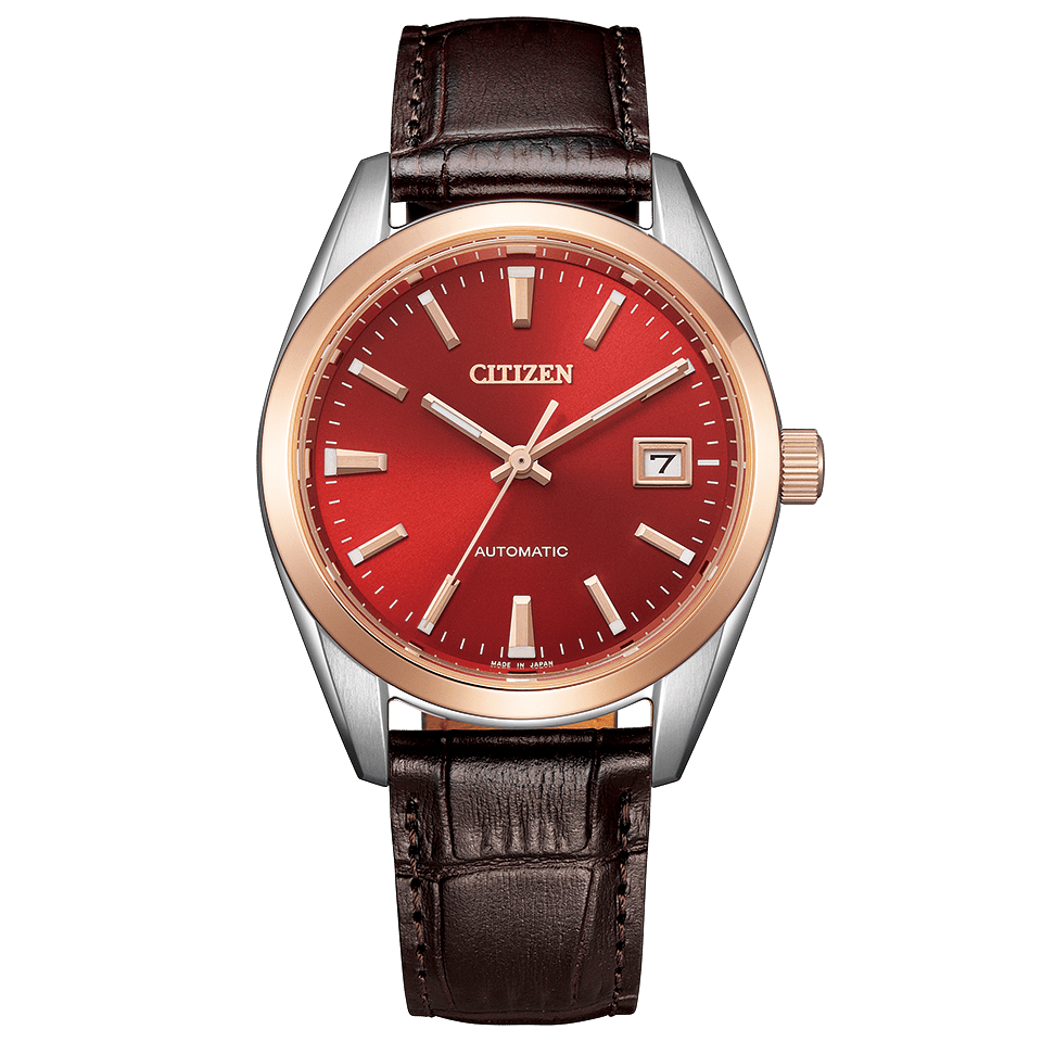 夕暮れ時の空を思わせる茜色を採用。シリーズで初めてピンクゴールドとシルバーを組み合わせたケースに濃茶の革バンドを合わせたクラシカルなデザインです。