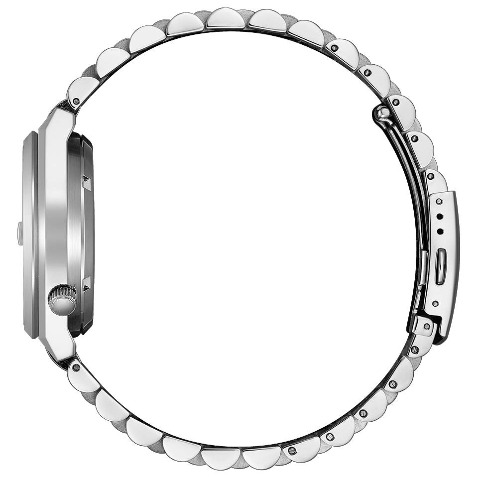 発色の良い文字板にシンプルでベーシックな針とインデックスを組み合わせ、すっきりとしたデザインが魅力の機械式時計です。スポーティなケース形状と腕なじみの良い3列バンドで付け心地の良さにもこだわり、カレンダー部分には視認性を高める拡大鏡レンズを採用しました。シースルーバックの裏ぶたで、機械式時計ならではの回転する錘(おもり)やメカの動きを楽しめます。