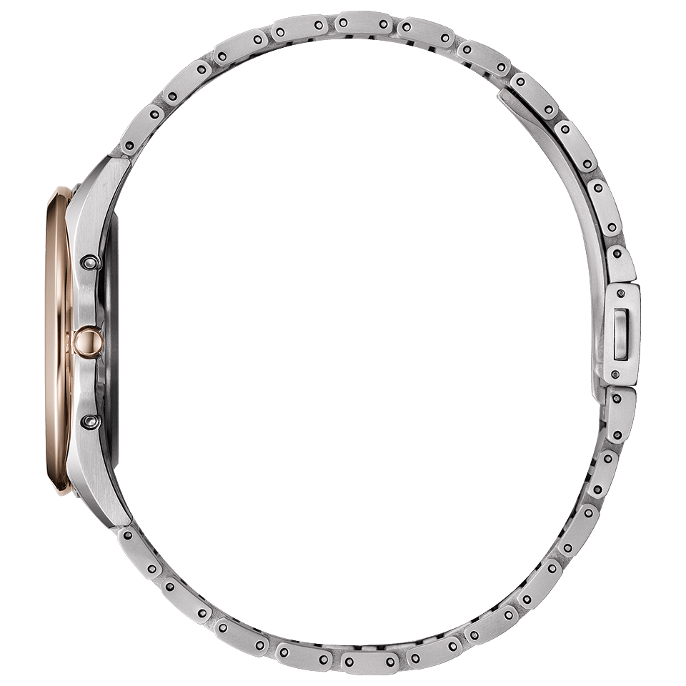 トレンドカラーを取り入れた、シンプルでありながらもメリハリのあるデザイン。ベージュ色の文字板がクラシカルで落ち着きのある印象を与えます。透明感のあるライトシルバー色のケースとバンド、サクラ色のベゼルを配したツートーンデザインが、ひときわエレガントな雰囲気を演出します。
