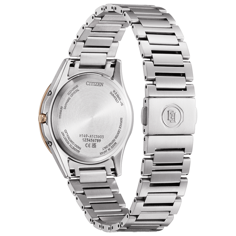 チタニウムにデュラテクト(表面硬化技術)を施したシチズン独自の素材『スーパーチタニウム』。ステンレスに比べて40%軽く、5倍以上の表面硬度を実現しています。