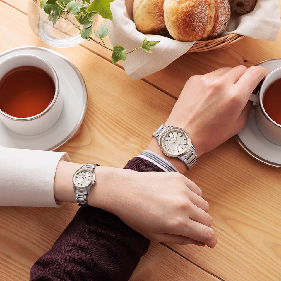 光発電『エコ・ドライブ』は、太陽光や室内のわずかな光を電気に換え、時計を動かしつづけるシチズン独自の技術です。一度フル充電すれば、光のないところでも長時間動き続けるので、定期的な電池交換は必要ありません。
