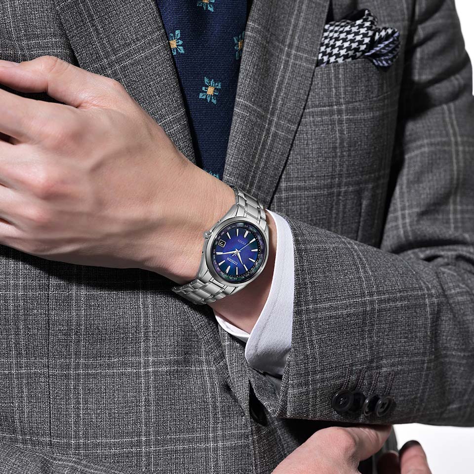 チタニウムにデュラテクト(表面硬化技術)を施したシチズン独自の素材『スーパーチタニウム』。ステンレスに比べて40%軽く、5倍以上の表面硬度を実現しています。