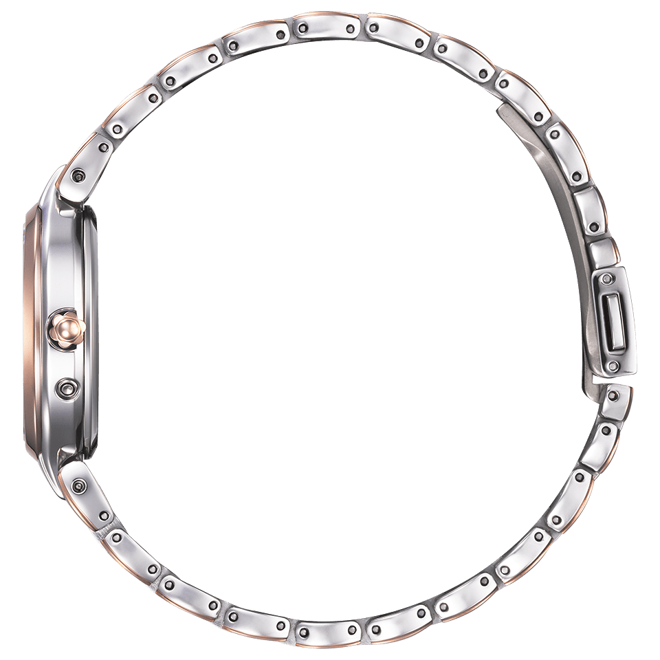光発電『エコ・ドライブ』は、太陽光や室内のわずかな光を電気に換え、時計を動かしつづけるシチズン独自の技術です。一度フル充電すれば、光のないところでも長時間動き続けるので、定期的な電池交換は必要ありません。