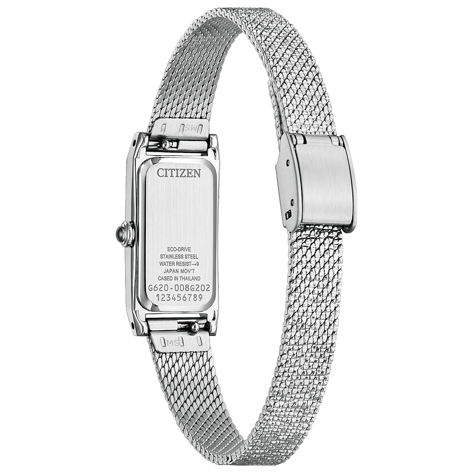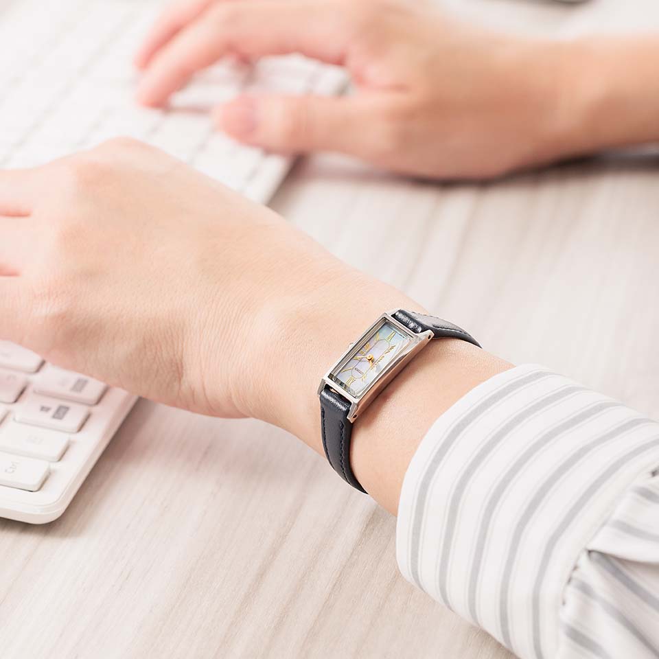 光発電『エコ・ドライブ』は、太陽光や室内のわずかな光を電気に換え、時計を動かしつづけるシチズン独自の技術です。一度フル充電すれば、光のないところでも長時間動き続けるので、定期的な電池交換は必要ありません。