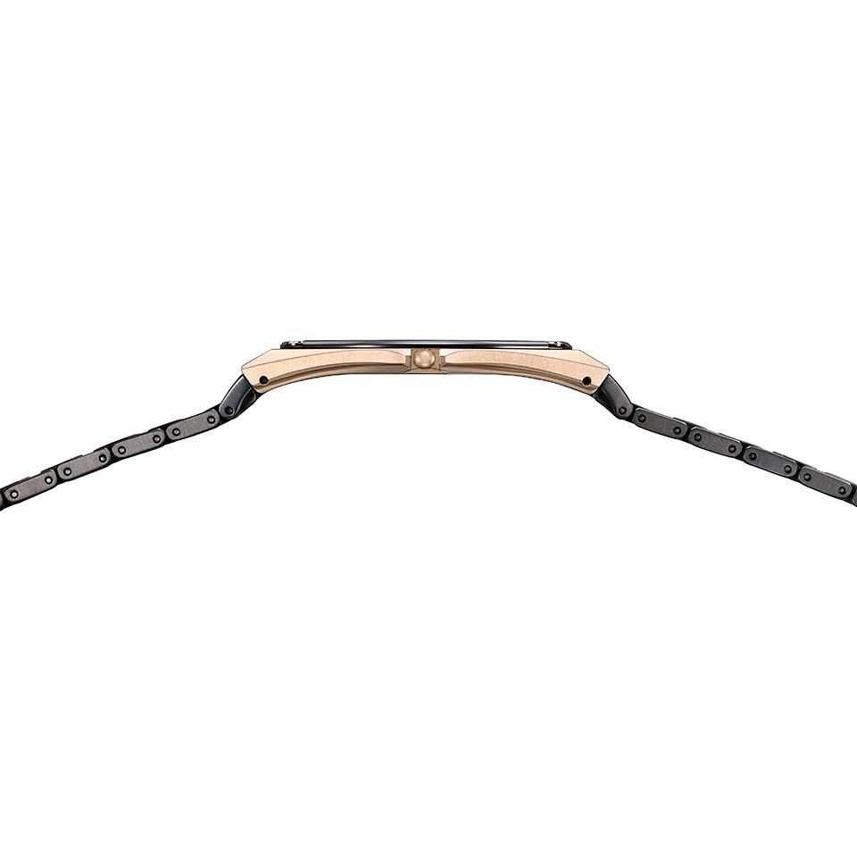 ブラックを基調に、ケースとケース上部の4つのネジにピンクゴールドカラーの知性と色気を纏わせた、特別仕様の限定モデルです。