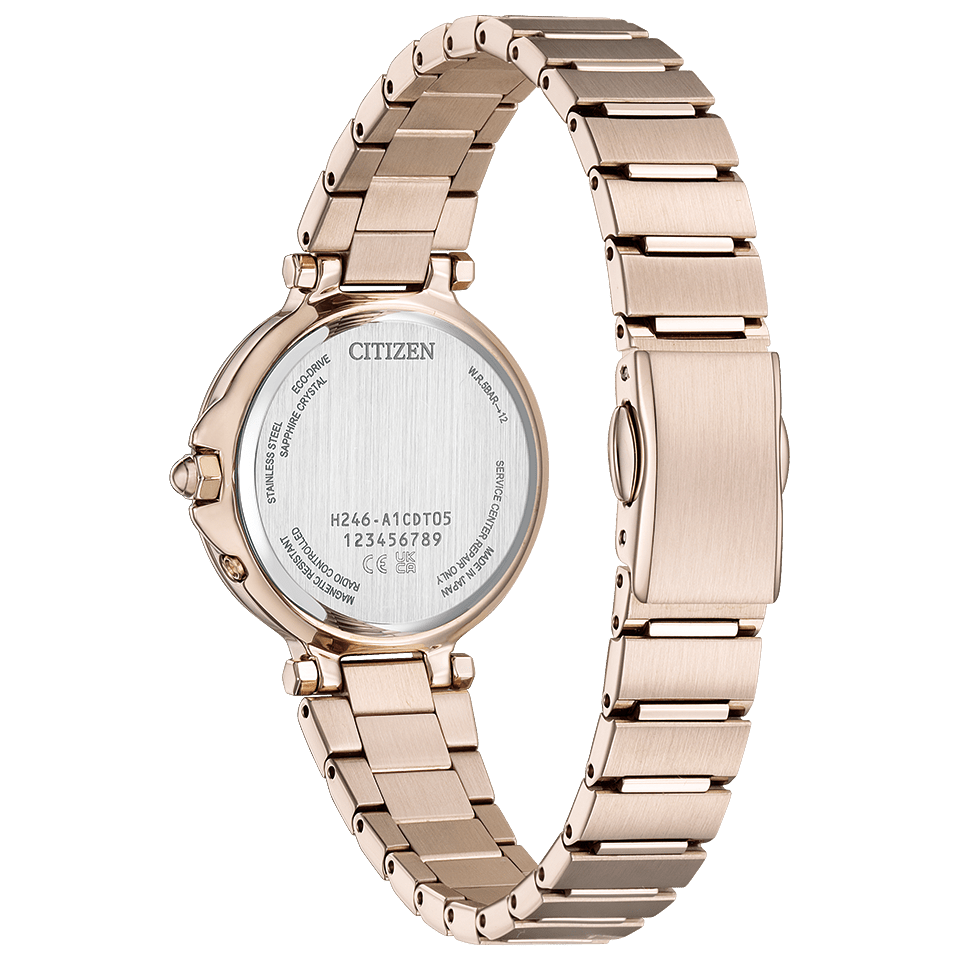 光発電『エコ・ドライブ』は、太陽光や室内のわずかな光を電気に換え、時計を動かしつづけるシチズン独自の技術です。一度フル充電すれば、光のないところでも長時間動き続けるので、定期的な電池交換は必要ありません。