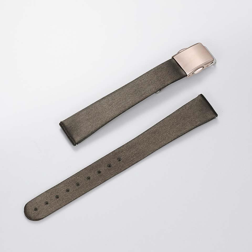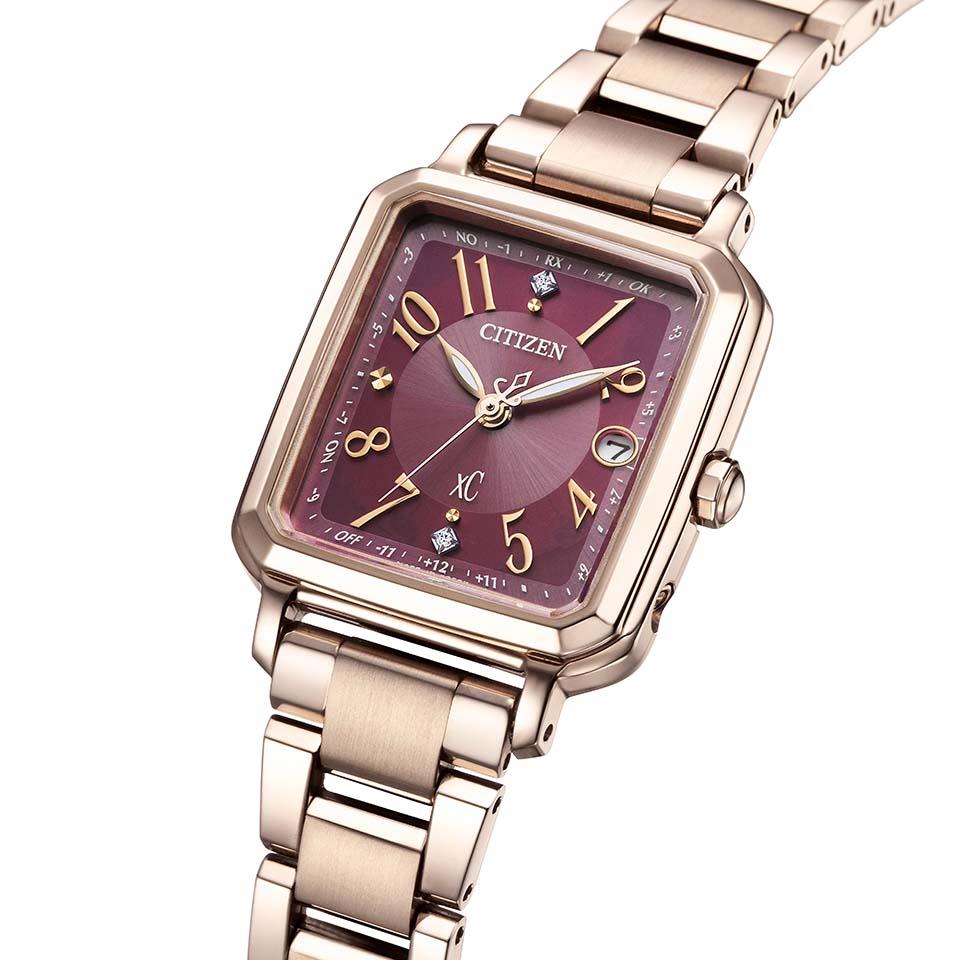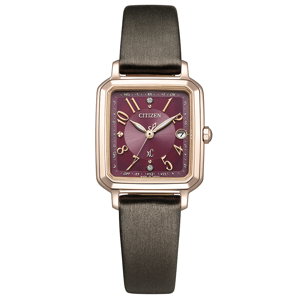 12時と6時の位置には、キラリと輝くラボグロウン・ダイヤモンドをセッティング。カットパーツのアクセントで華やかさを演出しています。シーンに合わせてエレガントな印象をつくれるブラウンの替えバンドもセットで、手軽に付け替え可能なインターチェンジャブル構造です。