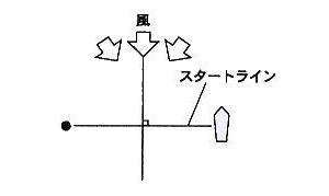 通常スタートラインは風向きに対して直角に設定されますが、風は常に変化していますので、完全に直角に設定されることはほとんどありません。