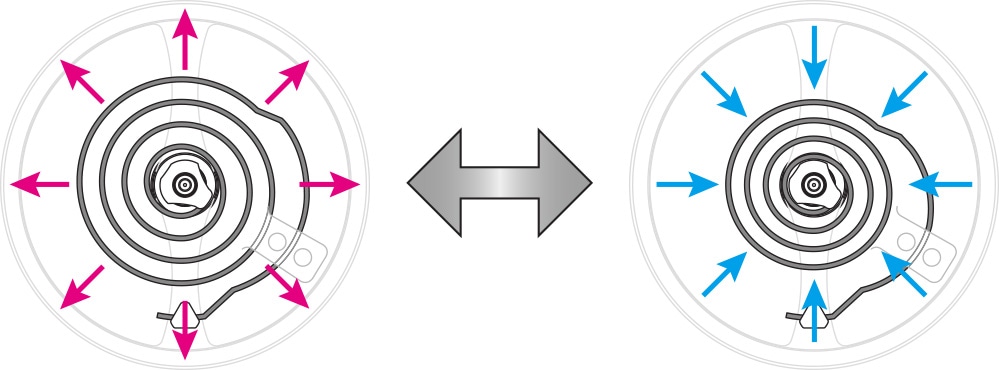 ですから、ひげぜんまいの広がったり縮まったりする動きは、できるだけ一定のほうがいいのです。