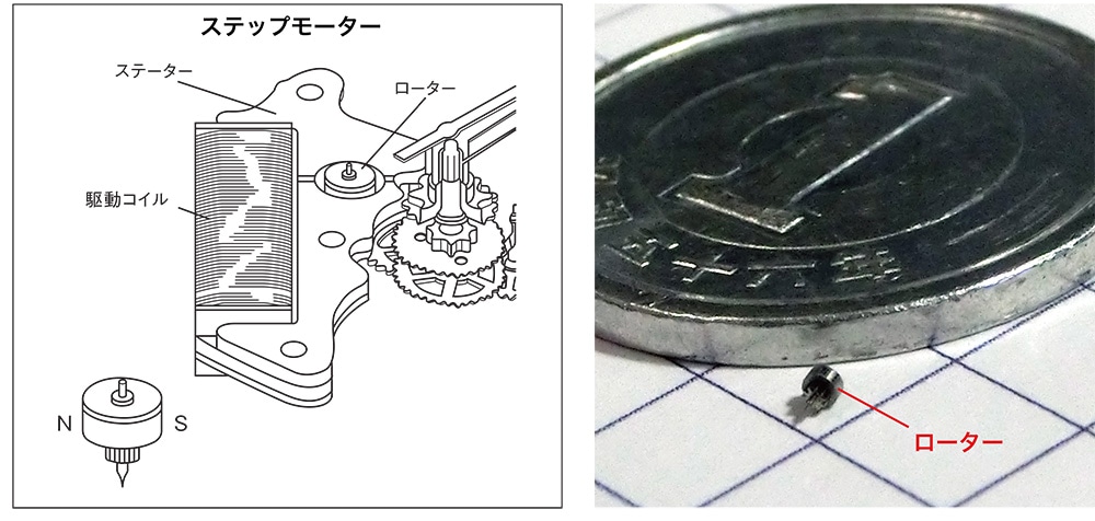 ステップモーター、アナログクオーツ時計