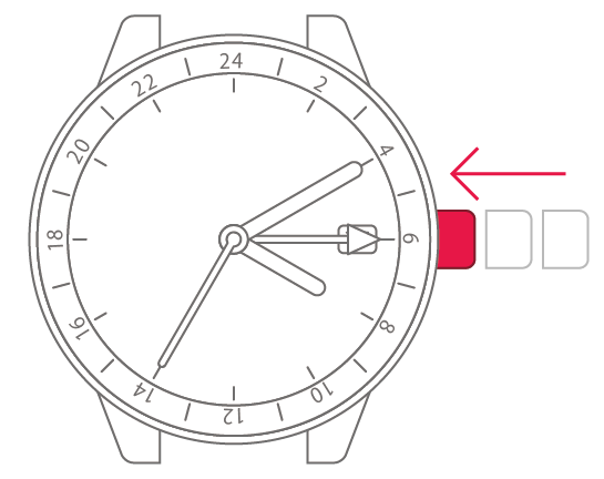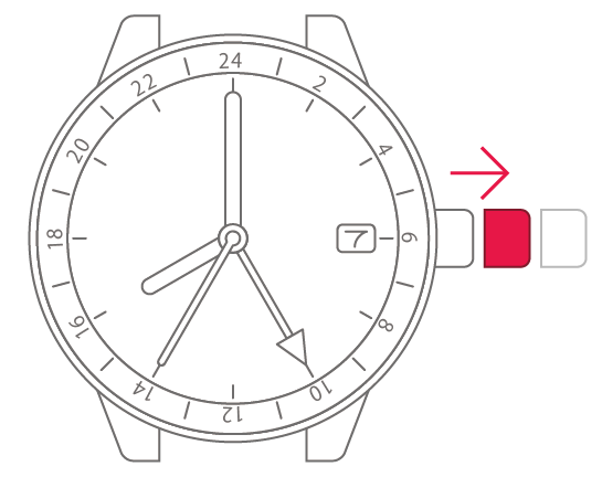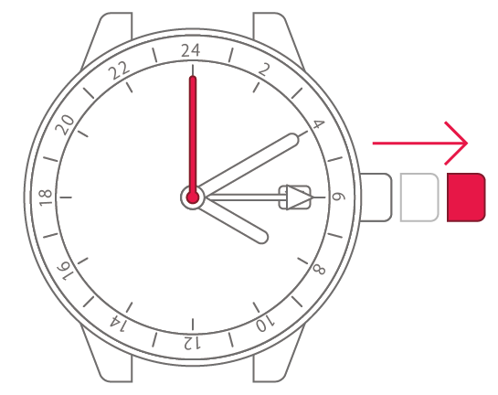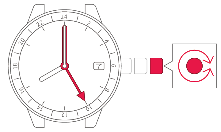ベゼルが回転するモデルは、ベゼルを回して「24」を真上(12時位置)に合わせてください。