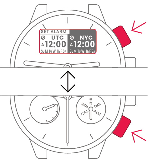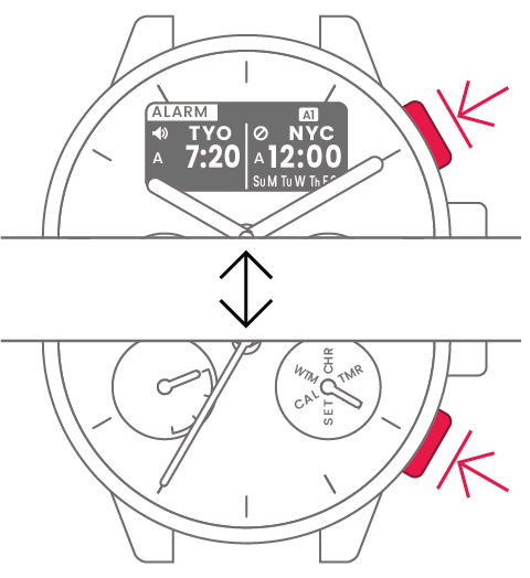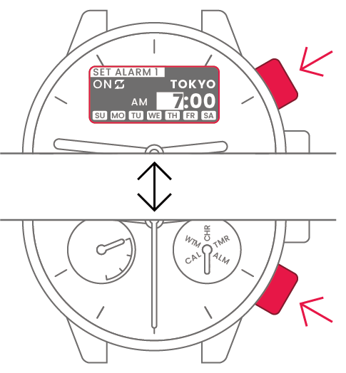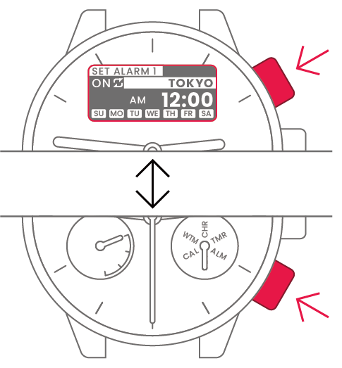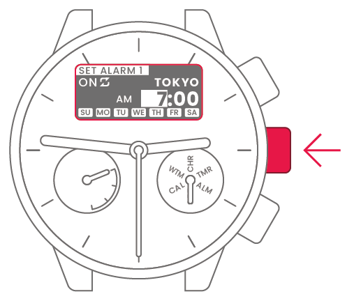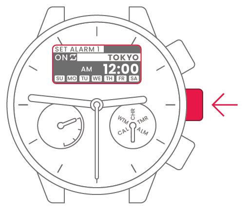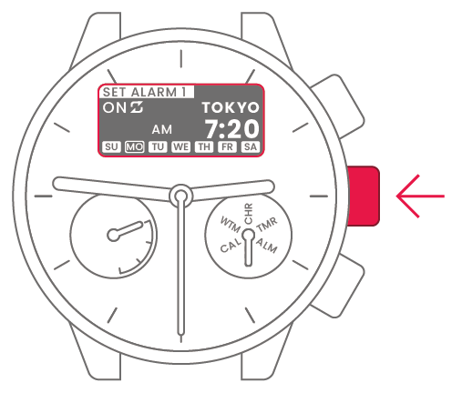 | 日曜日 | 右上ボタン/ 右下ボタンを 押して変える |