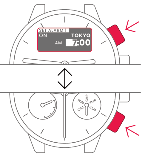 | 時 | 右上ボタン/ 右下ボタンを 押して変える |