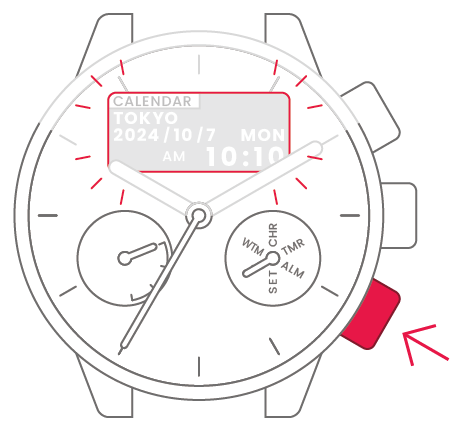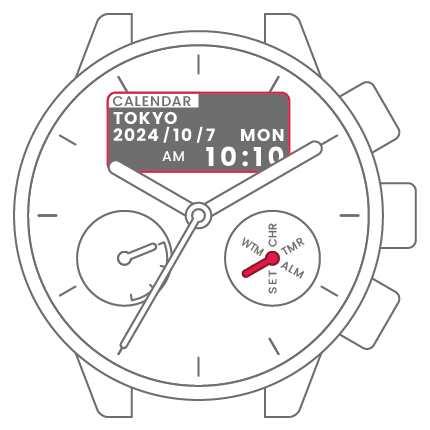 時計・カレンダーモード/ワールドタイムモードに切り替えます