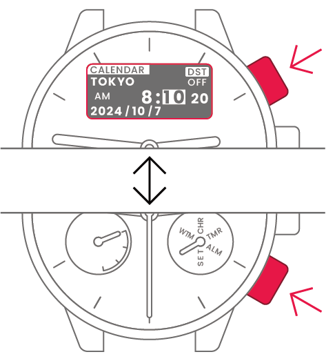 | 月 | 右上ボタン/ 右下ボタンを 押して変える |