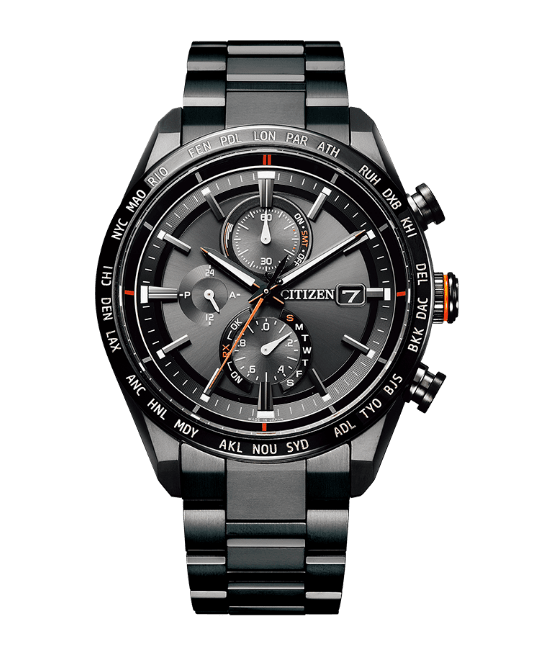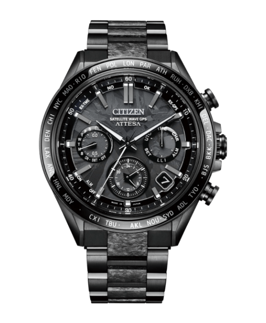 GPS衛星から受信した時刻を従来の2倍の運針速度で素早く表示する新ムーブメントCal.F950を搭載したCC4004-58Eは、チタニウム外装にシチズン独自の表面硬化技術「デュラテクトMRK」と「デュラテクトDLC」を重ねて施したモデルで、耐傷性と美しい艶を持つ「ブラックチタン™シリーズ」の最高峰に。