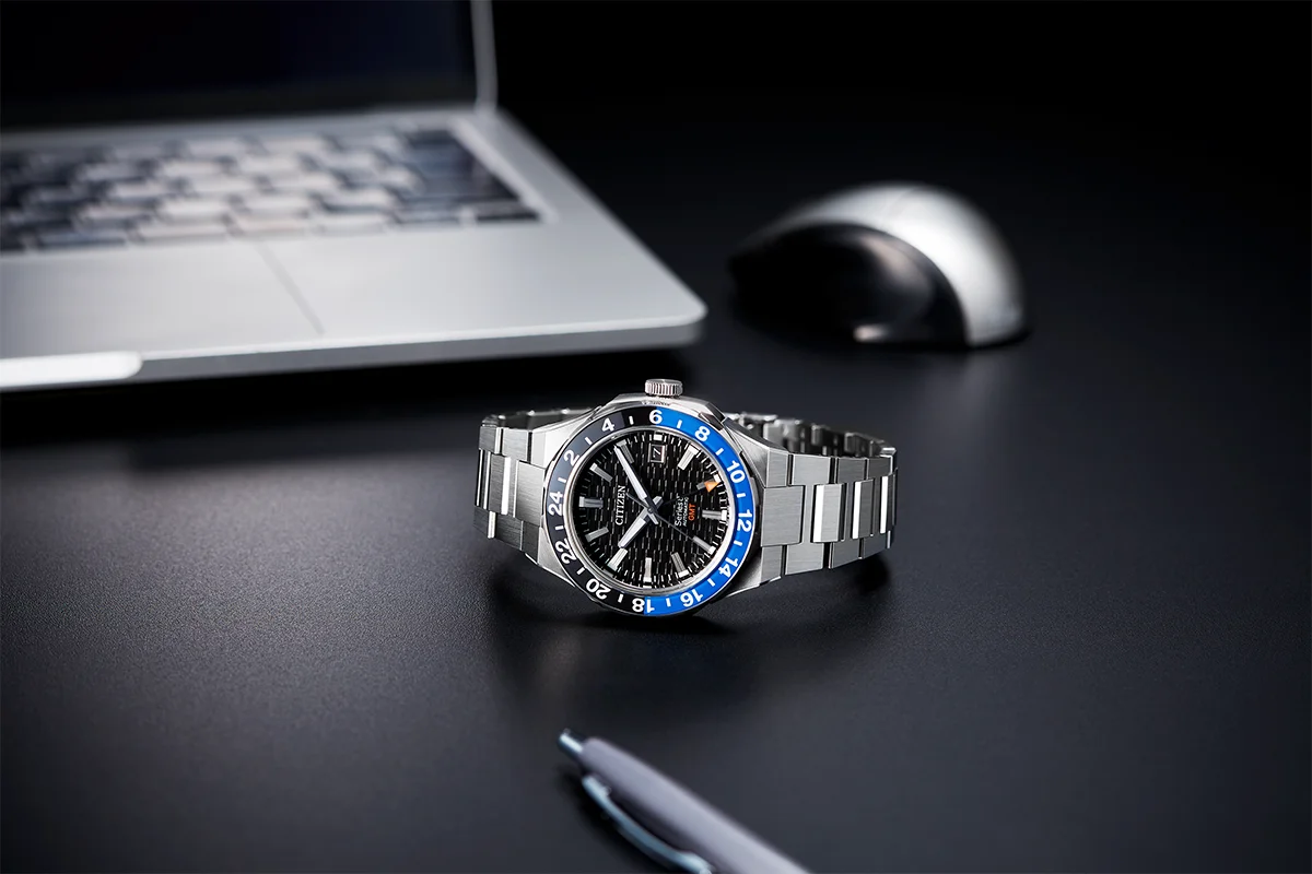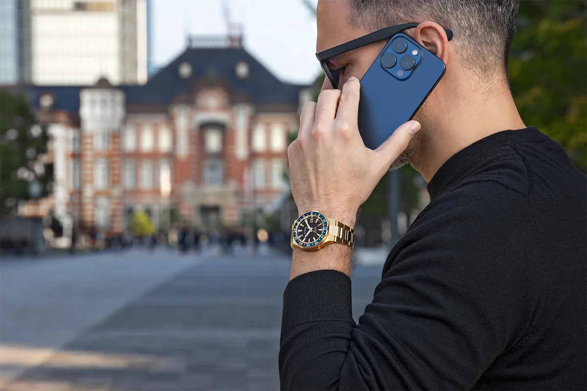 GMT機能付き機械式ムーブメント「Cal. 9054」搭載モデルは、世界をフィールドに活躍するユーザーとシンクロして、