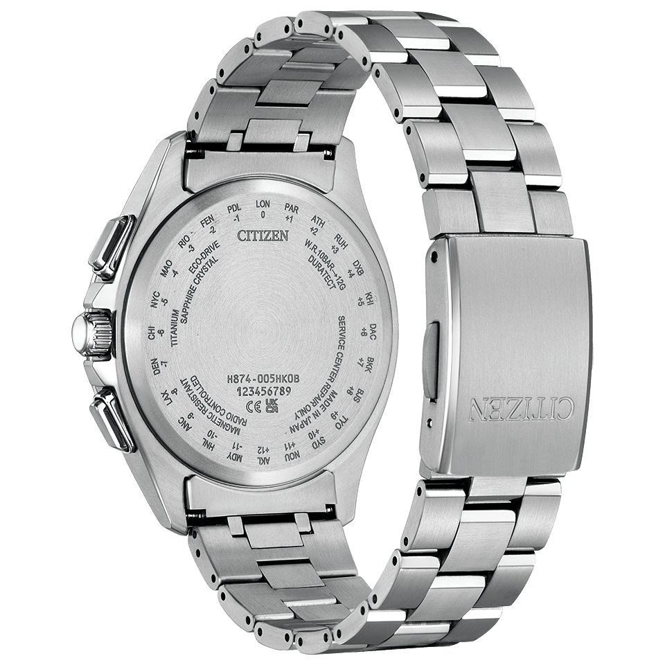 チタニウムにデュラテクト(表面硬化技術)を施したシチズン独自の素材『スーパーチタニウム』。ステンレスに比べて40%軽く、5倍以上の表面硬度を実現しています。