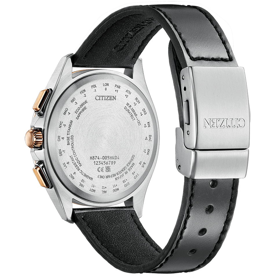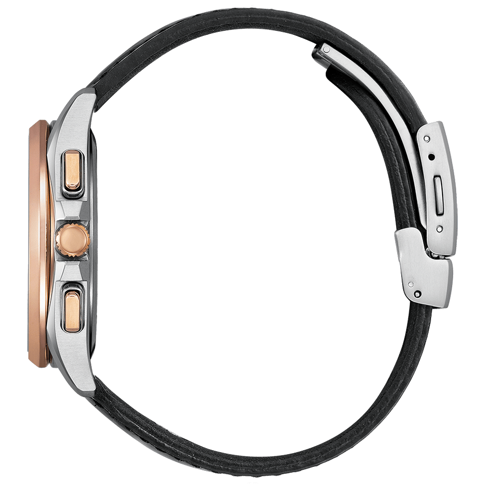 ケース形状はスポーティでありながら、のびやかなラグがエレガントなデザイン。多針ながらもスッキリとしたダイヤルレイアウトと、メタリック塗装を施したグレイッシュなブラウンの文字板が印象的です。*2023年8月現在。シチズン時計調べ。