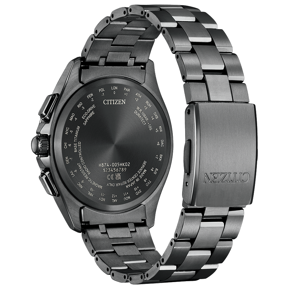 チタニウムにデュラテクト(表面硬化技術)を施したシチズン独自の素材『スーパーチタニウム』。ステンレスに比べて40%軽く、5倍以上の表面硬度を実現しています。