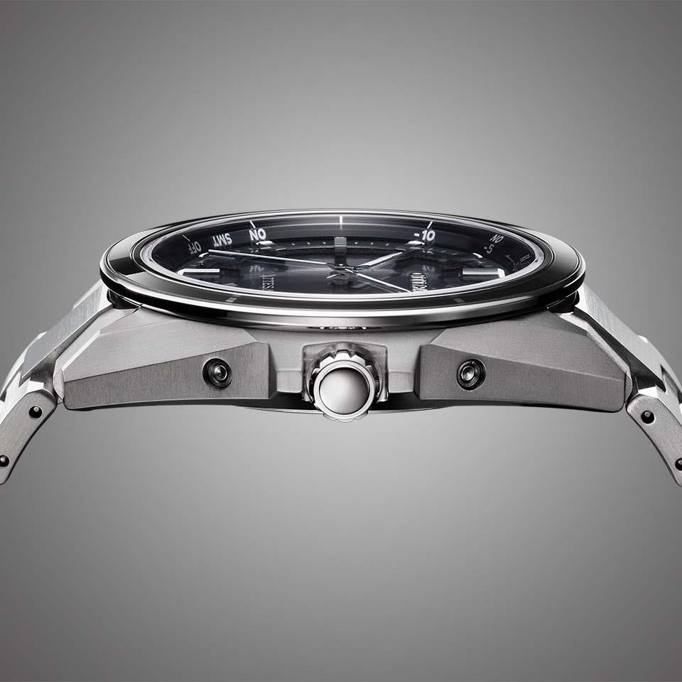 チタニウムにデュラテクト(表面硬化技術)を施したシチズン独自の素材『スーパーチタニウム』。ステンレスに比べて40%軽く、5倍以上の表面硬度を実現しています。