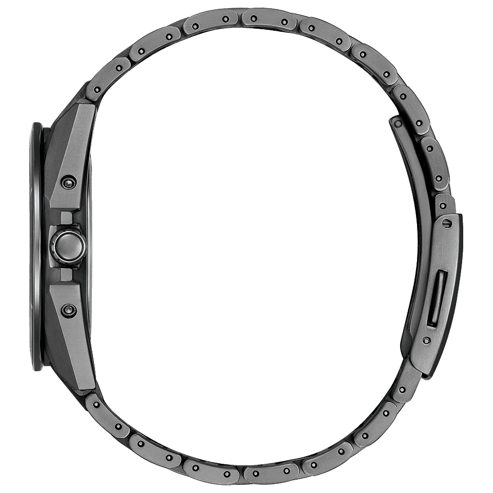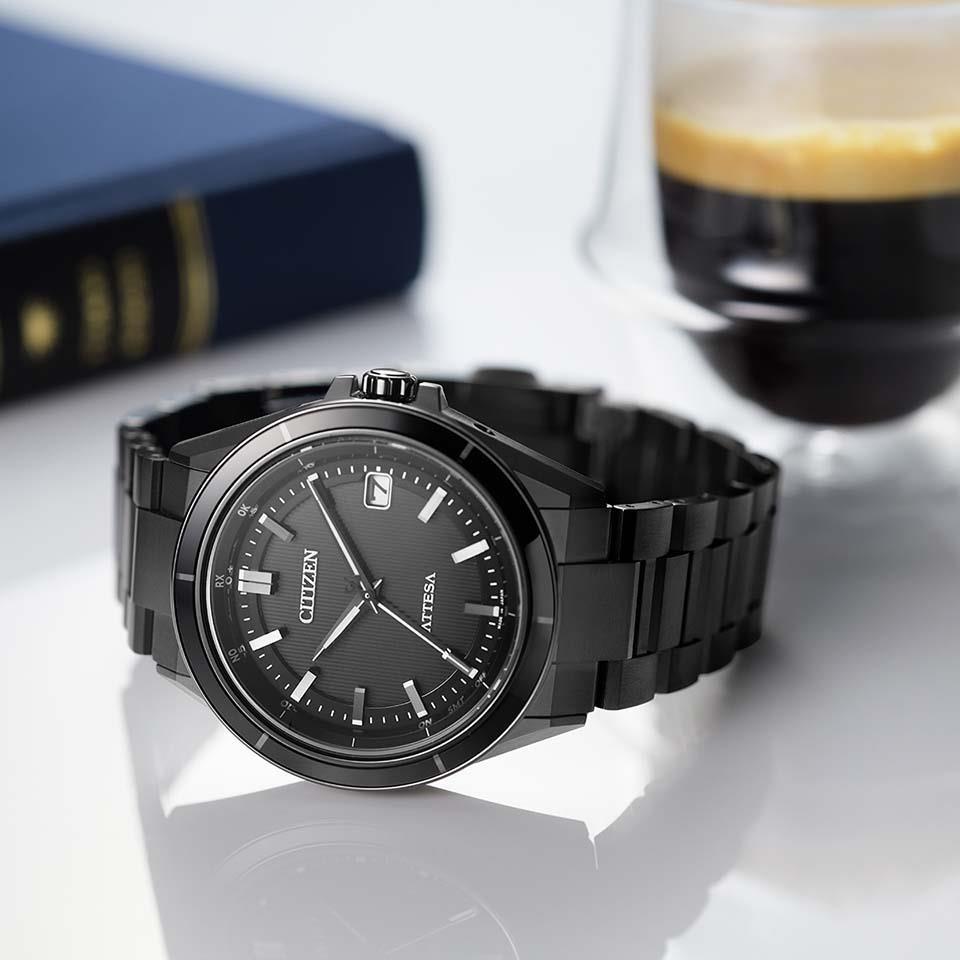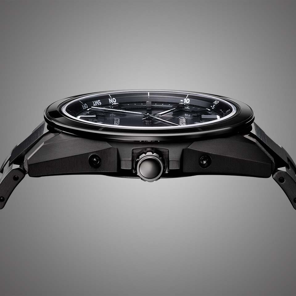 ブラックチタン™のケース、バンドと、モノトーンで統一された文字板が、エレガントな高級感を演出。シンプルな文字板ながら印象的なデザインに仕上げています。