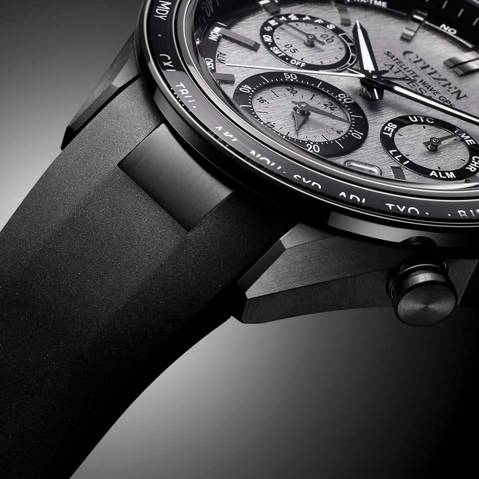 チタニウムにデュラテクト(表面硬化技術)を施したシチズン独自の素材『スーパーチタニウム』。ステンレスに比べて40%軽く、5倍以上の表面硬度を実現しています。