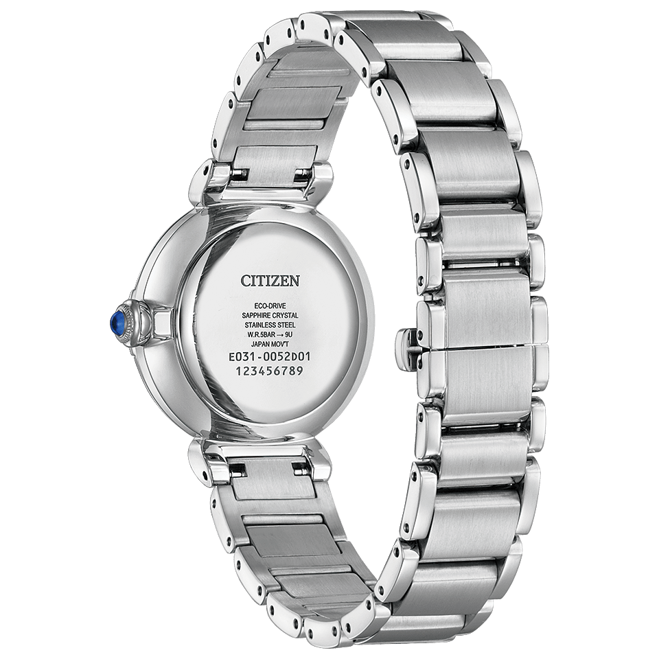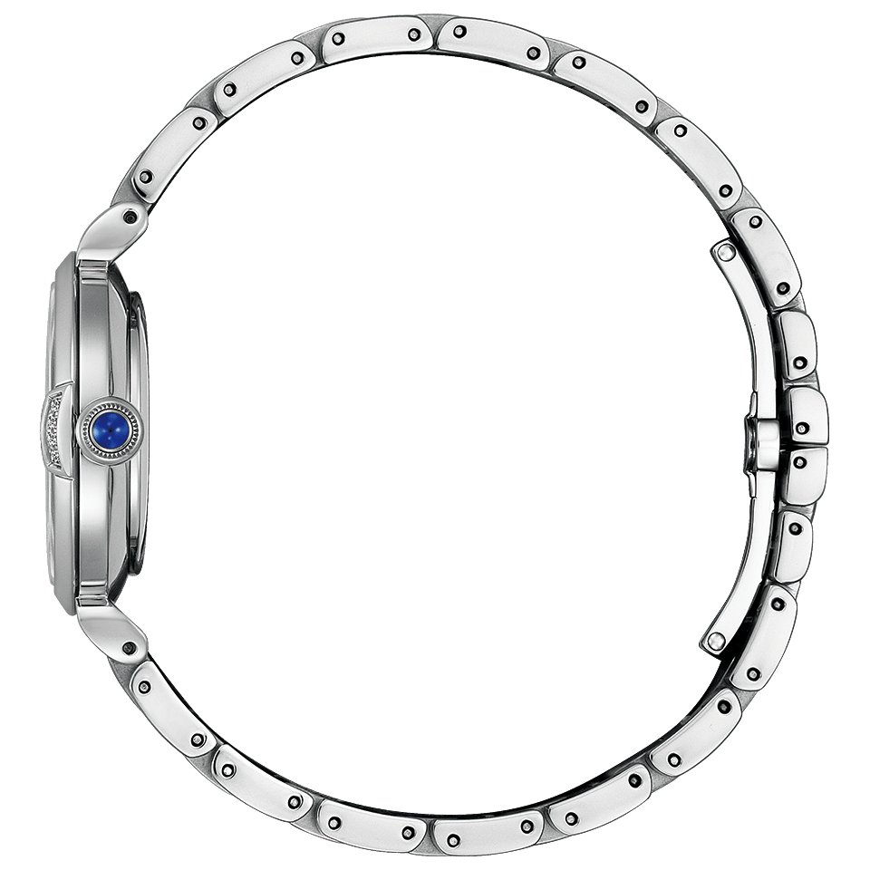 光発電『エコ・ドライブ』は、太陽光や室内のわずかな光を電気に換え、時計を動かしつづけるシチズン独自の技術です。一度フル充電すれば、光のないところでも長時間動き続けるので、定期的な電池交換は必要ありません。