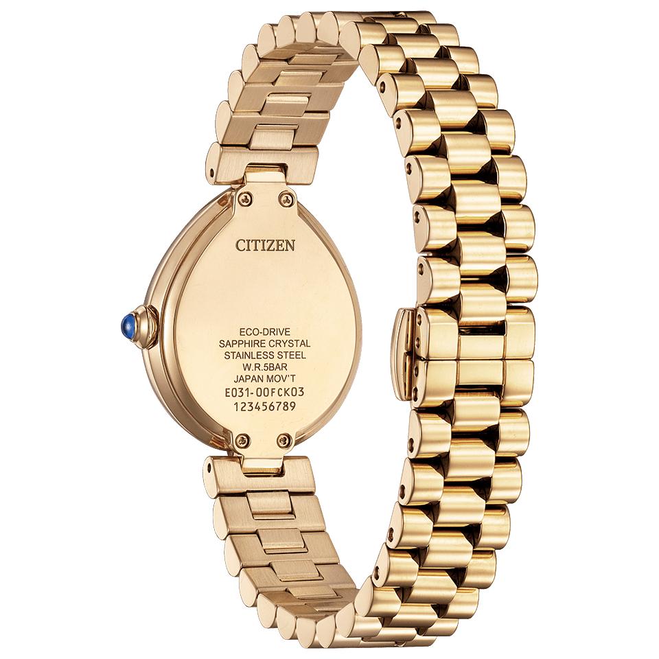 光発電『エコ・ドライブ』は、太陽光や室内のわずかな光を電気に換え、時計を動かしつづけるシチズン独自の技術です。一度フル充電すれば、光のないところでも長時間動き続けるので、定期的な電池交換は必要ありません。