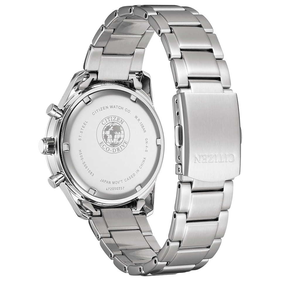 光発電『エコ・ドライブ』は、太陽光や室内のわずかな光を電気に換え、時計を動かしつづけるシチズン独自の技術です。一度フル充電すれば、光のないところでも長時間動き続けるので、定期的な電池交換は必要ありません。