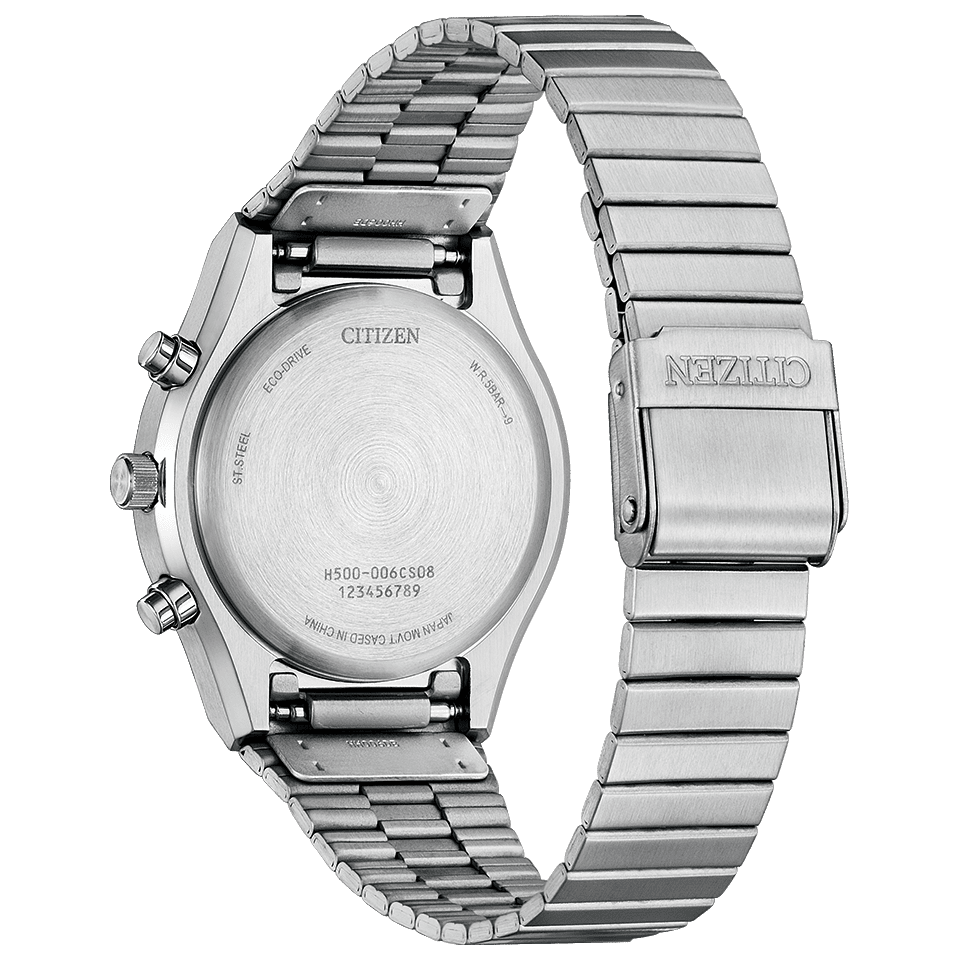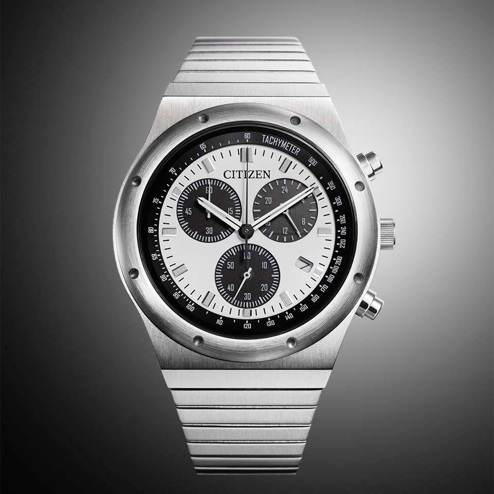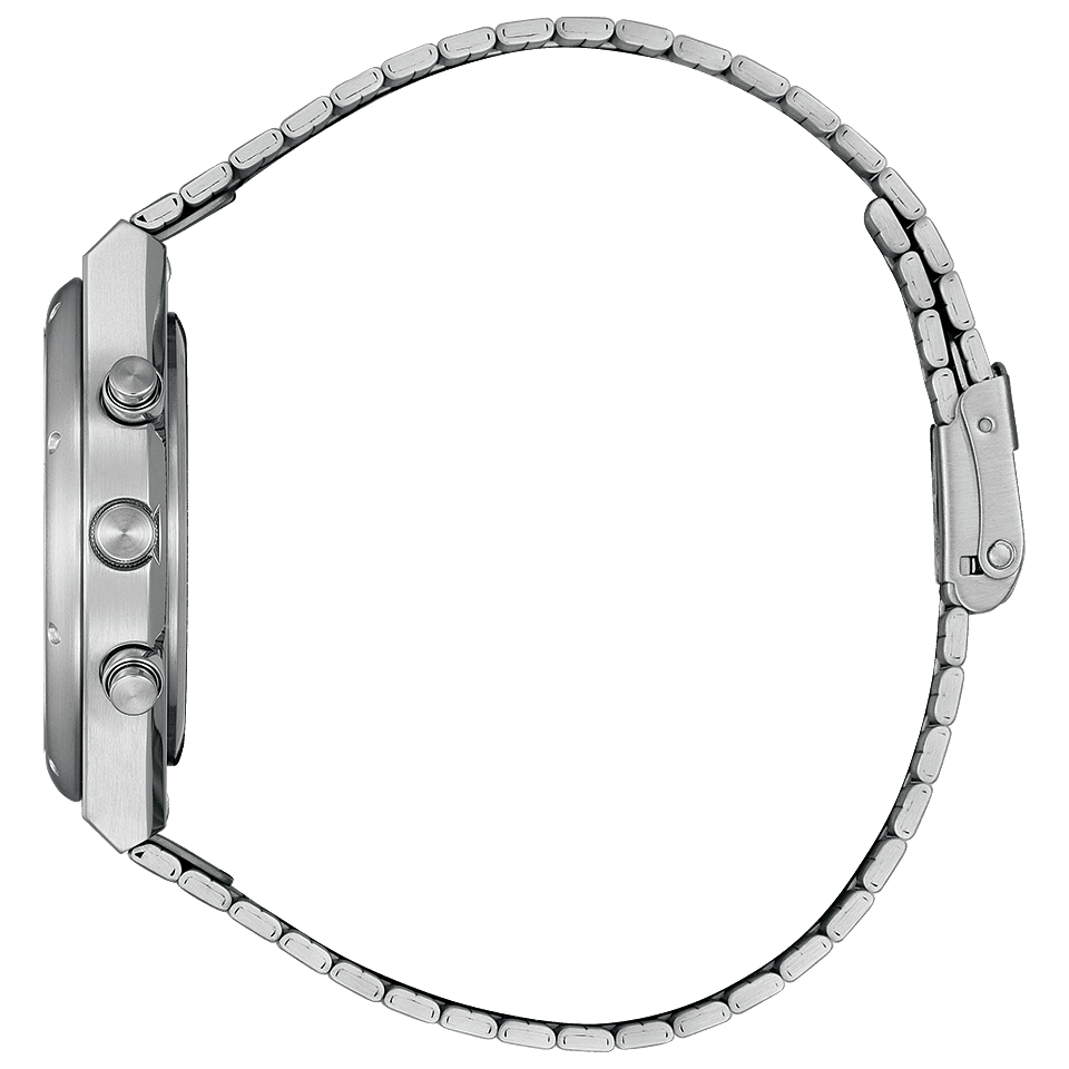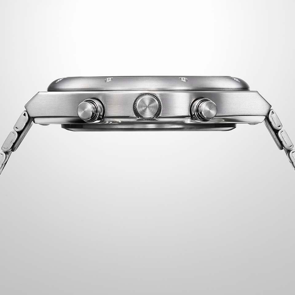 昭和後期の世界観をイメージして、1984年に発売された多機能アナログクオーツクロノグラフ「スポルテ MS」を"ポスト・ヴィンテージ"テイストにアップデートしました。「スポルテ MS」のケースからバンドにかけてのスタイリッシュなラインや少し武骨な印象を与えるベゼルの飾り穴処理を再現。レトロな印象とクロノグラフのスポーティーさを同時に楽しめます。