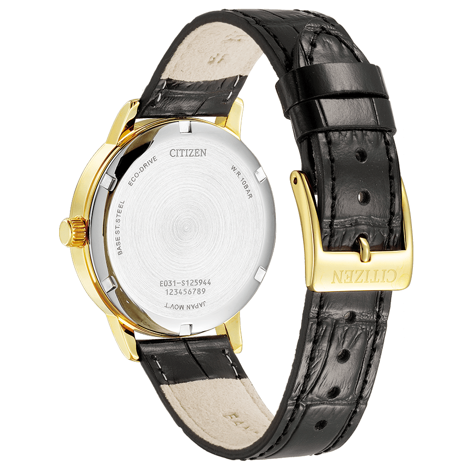 光発電『エコ・ドライブ』は、太陽光や室内のわずかな光を電気に換え、時計を動かしつづけるシチズン独自の技術です。一度フル充電すれば、光のないところでも長時間動き続けるので、定期的な電池交換は必要ありません。
