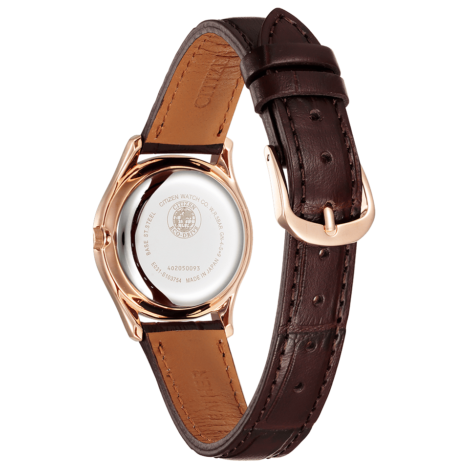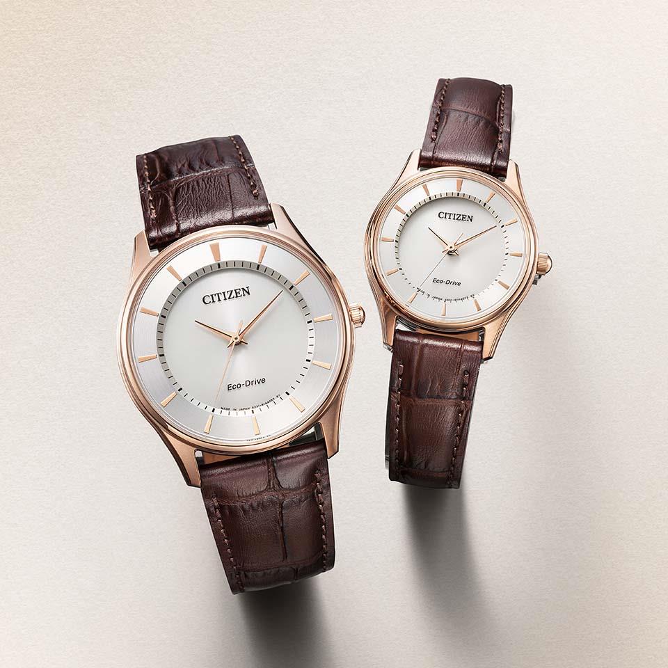 光発電『エコ・ドライブ』は、太陽光や室内のわずかな光を電気に換え、時計を動かしつづけるシチズン独自の技術です。一度フル充電すれば、光のないところでも長時間動き続けるので、定期的な電池交換は必要ありません。